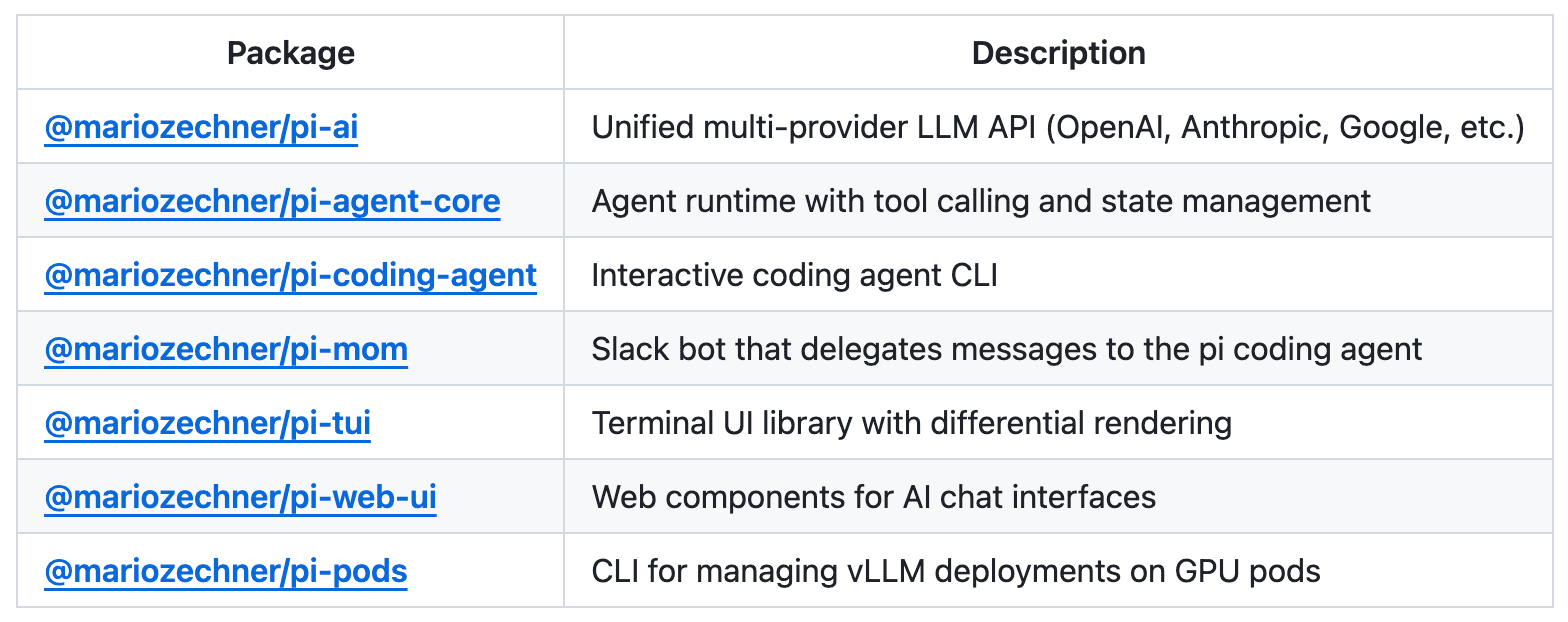 35、pi-mono:极简的 AI Agent 工具箱。这是一款基于 TypeScript 开发的 AI Agent 工具箱,爆火的 OpenClaw 就是基于该项目开发出来的。它提供开发 AI Agent 所需的基础功能,包括统一多 LLM 服务接口、Agent 状态管理、工具调用、交互式命令行界面、WebUI 和 Slack 机器人集成等。