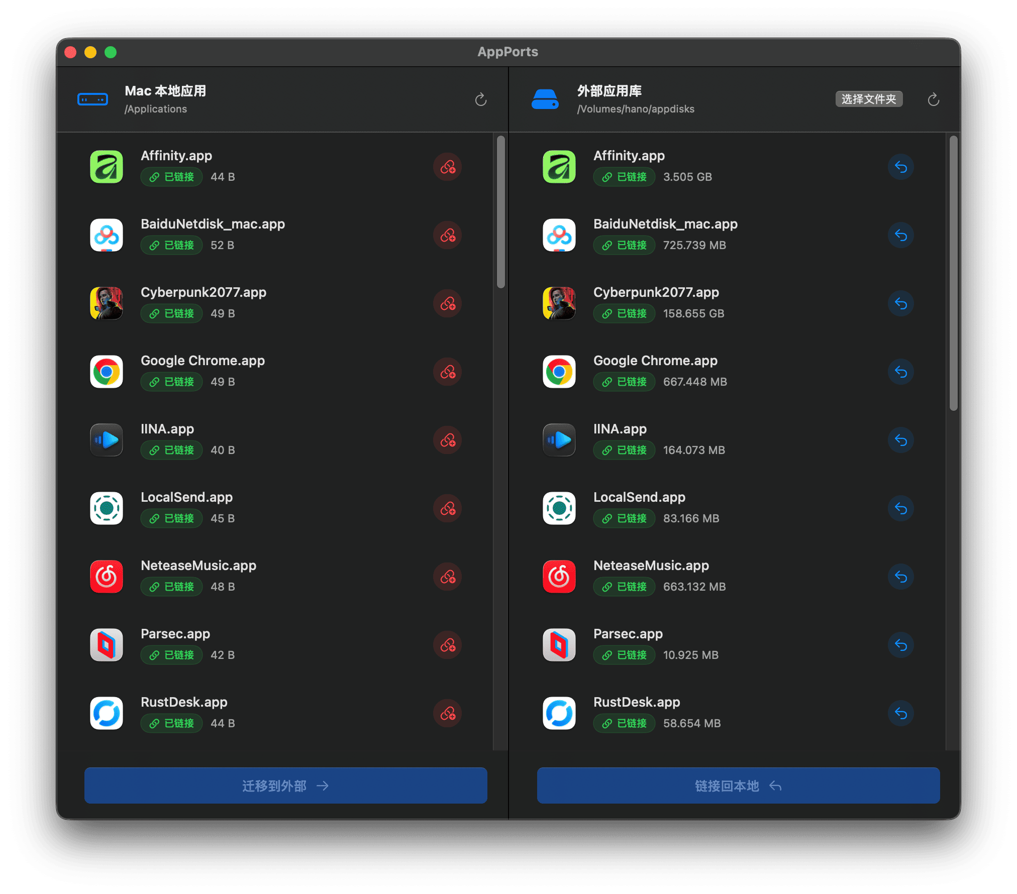 28、AppPorts:一键将 macOS 应用迁移到外部硬盘。该项目通过 Contents 链接的方式,将 macOS 应用迁移到外部存储设备(移动硬盘、SD 卡或 NAS),并在原位置保留应用入口,让用户能够像之前一样启动应用,在不影响使用的前提下释放宝贵的 macOS 存储空间。来自 @Zehua Wang 的分享
